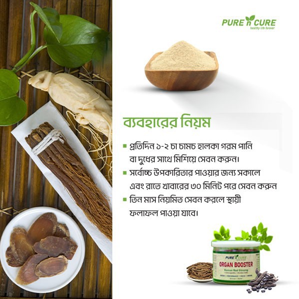অর্গান বুস্টার (ORGAN BOOSTER) একটি উন্নতমানের ভেষজ ফর্মুলা দ্বারা তৈরী বিশেষ ফুড সাপ্লিমেন্ট, যা শারীরিক ও মানসিক কর্মক্ষমতা বৃদ্ধি ও রোগ প্রতিরোধ ক্ষমতা বাড়াতে সহায়তা করে। অর্গান বুস্টারে রয়েছে কোরিয়ান রেড জিনসেং, অশ্বগন্ধা, শিমুল মূল, আলকুশি, আকরকরা, তেঁতুল বীজ, জিঙ্কগো বিলোবা এবং ত্রিফলা। যৌন আকাঙ্ক্ষা, সক্ষমতা ও মিলনের স্থায়ীত্ব বৃদ্ধি করে। এছাড়াও মানসিক চাপ ও উদ্বেগ কমায়, মস্তিষ্কের কার্যকারিতা ও ফোকাস বৃদ্ধিতে সহায়তা করে । অর্গান বুস্টার পুরুষ এবং মহিলা উভয়ের জন্যই সমানভাবে কার্যকরী।
